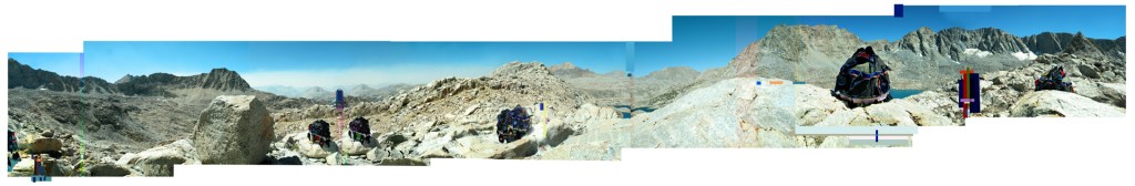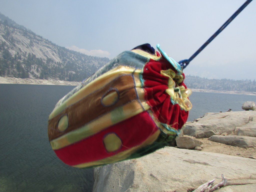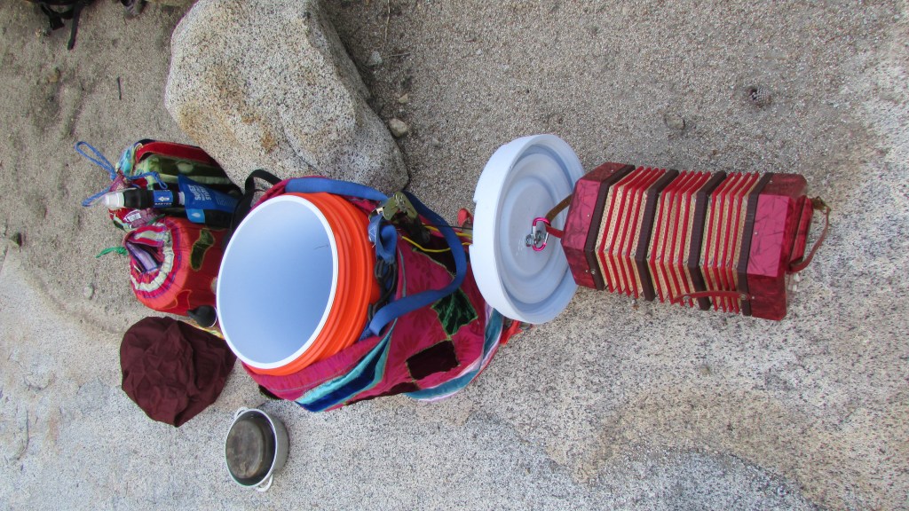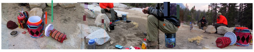 You apply for exciting opportunities in the arts needing to some how break through the competition—you make claims about your fitness and readiness—during your ph interview as a finalist confidence abounds you nonchalantly assure all – but really it has been 20 years since you backpacked at this level and never at this elevation for an extended period—you are an over 50 yr old educator, you are an artist—the thought can I do this really has come pretty late in the game. Tory points out that we can beg for mercy—we imagine Sara our crew leader—we have not met her: all we know is she works as a wilderness ranger and has hiked all three of the transcontinental trails—we are feeling intimidated—luckily we have a watermelon to offer in the morning to start off in good graces. Bear cans finally packed into packs we add all our other gear—simply everything we will need have or use for the next 8 days and—Tory and I have known each other about 48 hrs and decide to share a tent for 8 nights to cut the total weight—