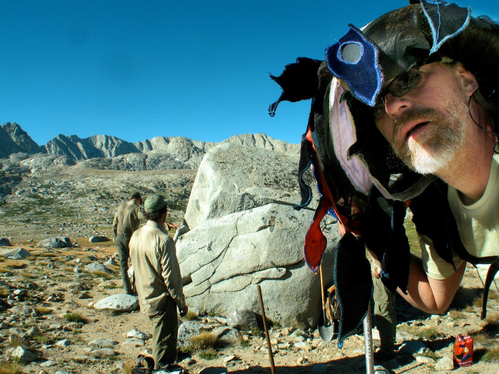 The Kotawa (Keepers of the American Wilderness Act) Project was done with the support of the Also &Leonardo foundation and was organized by Colorado Art Space. To celebrate the 50th anniversity of the Wilderness Act artists were selected to be embedded with research scientists and wilderness ranges in a variety of wilderness settings rom Pueto Rico to Alaska–my own embedded experience was in the High Sierra Alpine region of the John Muir Wilderness Area–here for 30 days I initiated actions with and for my happenstance co-occupants of the biome–human animals plants stone and ice, culminating in an eight days of off trail trekking